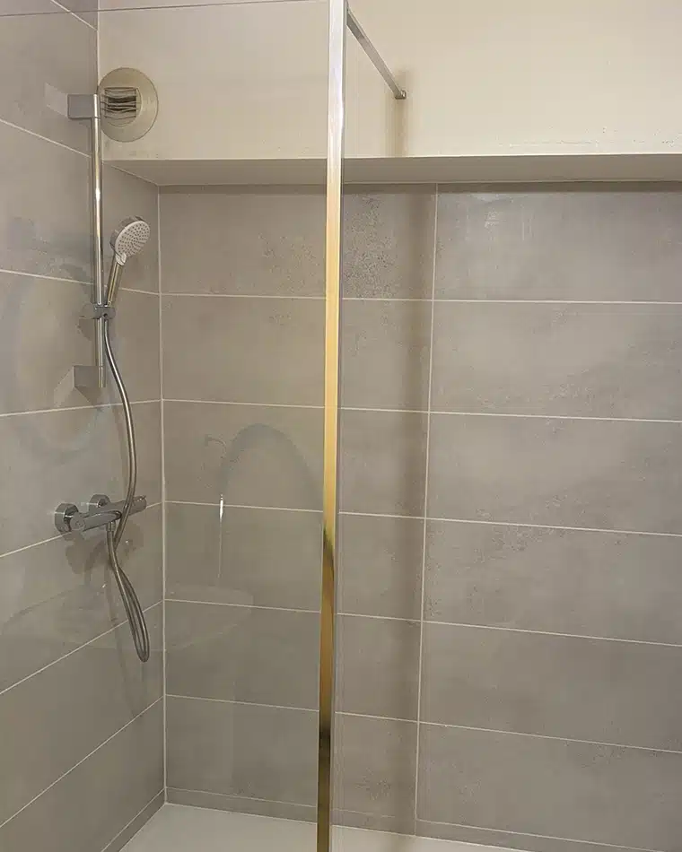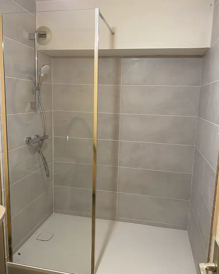 À la demande des clients, nous avons enlevé la baignoire, installé une douche et changé la faïence pour en installer une plus moderne.